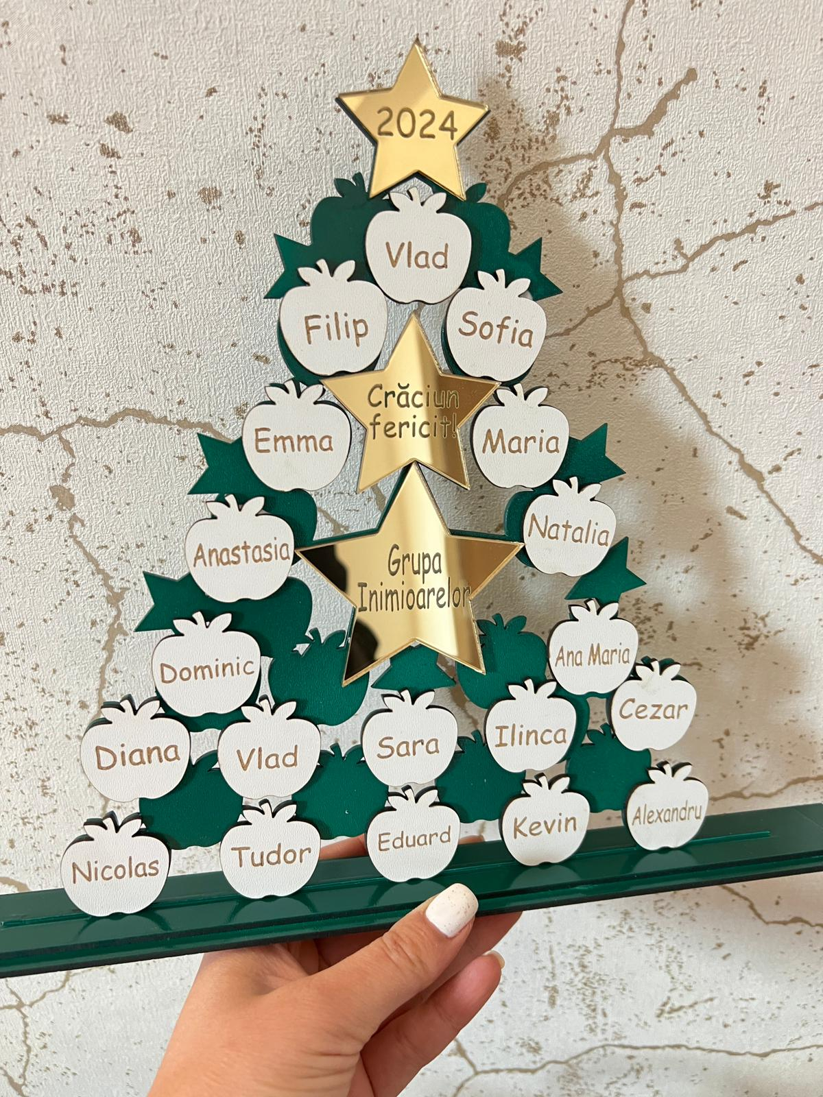 Am pregătit cu drag un brăduț personalizat, decorat cu numele tuturor copiilor din grupă, ca simbol al recunoștinței și aprecierii noastre. 🌟 Fiecare nume reprezintă zâmbetul, bucuria și amintirile create împreună, sub îndrumarea grijulie a doamnei educatoare.