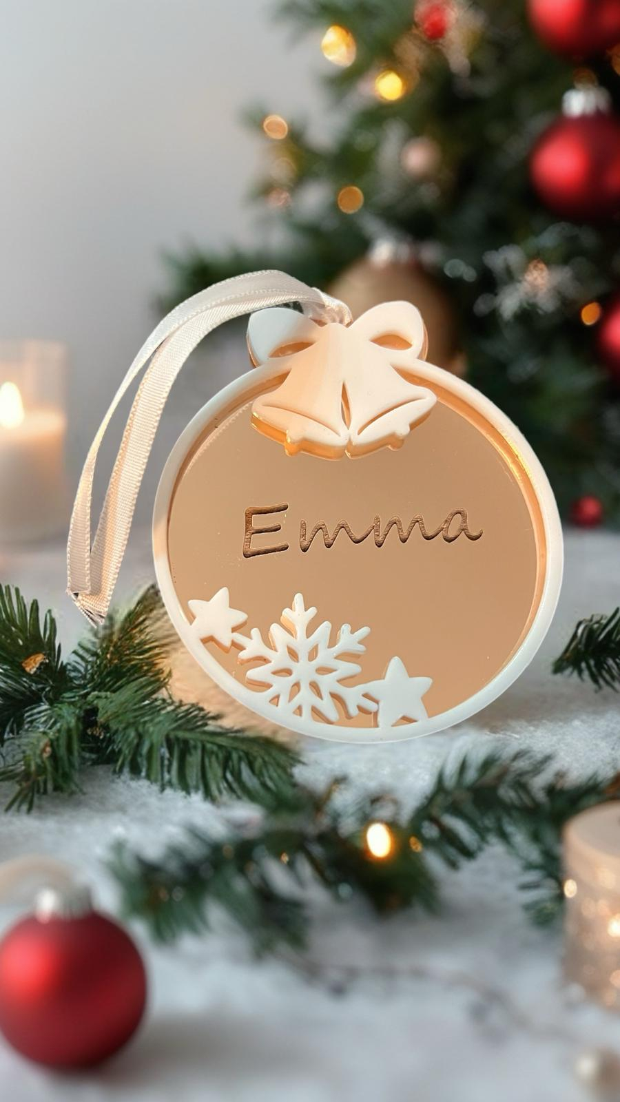 Adaugă o notă elegantă bradului tău de Crăciun cu acest glob personalizat din plexiglass oglindă, gravat cu numele dorit. 💫 Realizat cu atenție la detalii, globul are o suprafață strălucitoare, care reflectă perfect lumina instalației, transformând orice colț al casei într-un loc magic. ✨