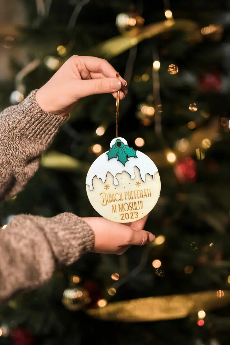 Globul din lemn – „Bunicii preferați ai Moșului” este un ornament special, plin de emoție și recunoștință, creat pentru a aduce zâmbetul în sufletul bunicilor la fiecare Crăciun.